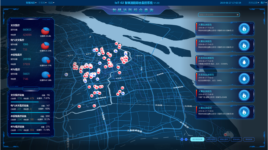 區域內各類火災告警統一監控,實時知曉各處設備狀態