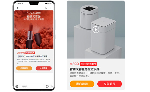 將熱銷產品推送給目標客戶,通過視頻或圖文的形式立體化展現產品信息,強烈吸引用戶,并提供立即購買功能,點擊后直接進入訂單支付頁面,提高用戶轉化率。
